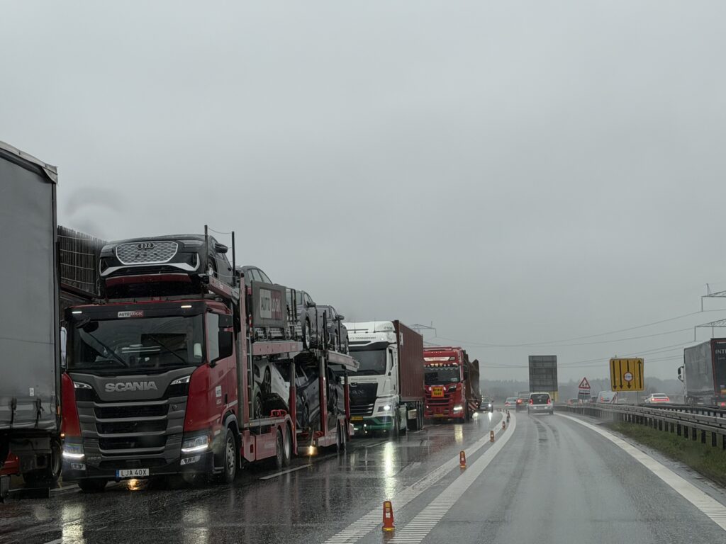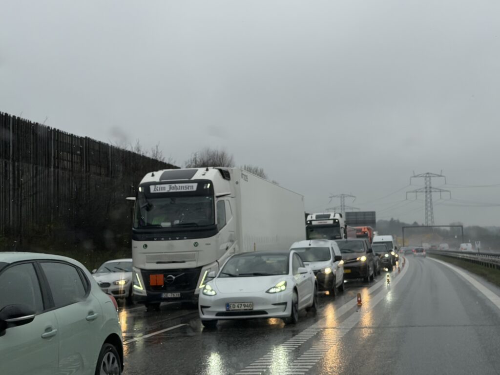 ‘Vi er netop nu til stede ved færdselsuheld på motorvejen ved Kolding. Uheldet er sket ved afkørsel 63 i nordling retning, og medfører kø. Der er lige nu et spor åbent så forvent ekstra rejsetid. Vis hensyn og følg anvisninger på stedet,’ oplyser Sydøstjyllands Politi klokken 09.30.