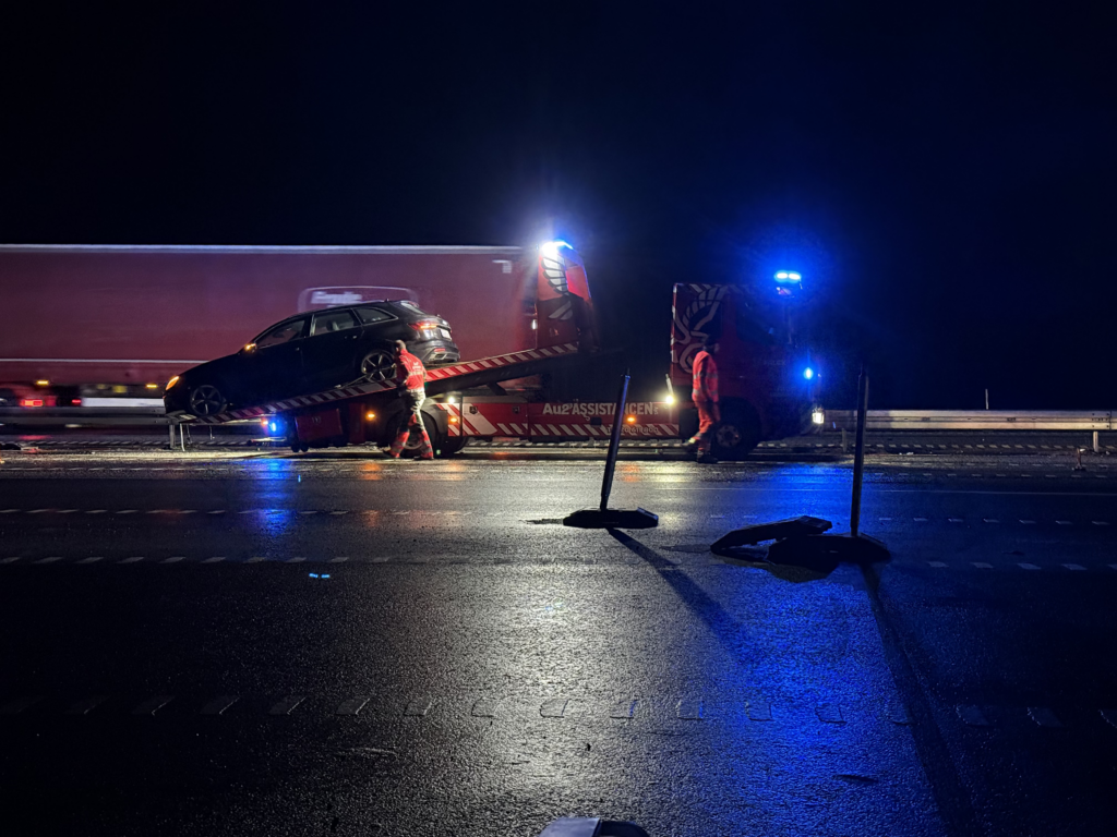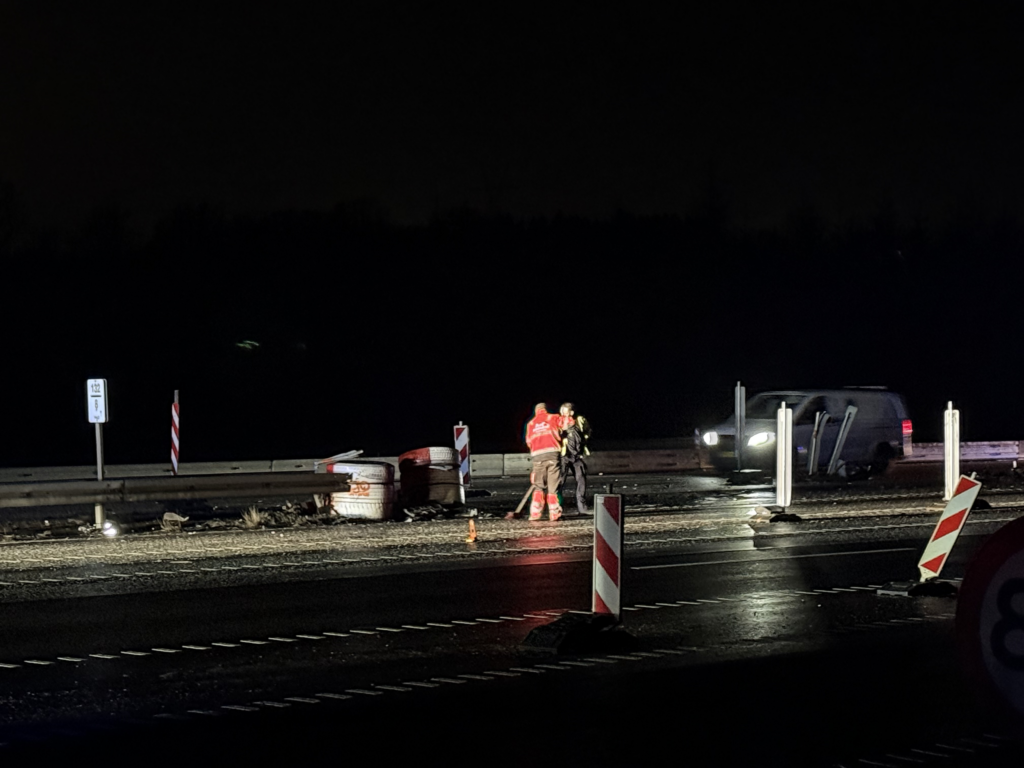 Ifølge en udsendt fra Presse-fotos.dk er en personbil kørt ind i autoværnet, og én person er kørt til hospitalet.