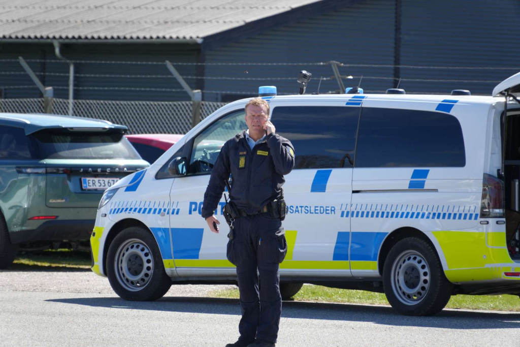 Billeder fra stedet viser, at politiet er til stede med flere køretøjer, herunder en indsatslederbil.