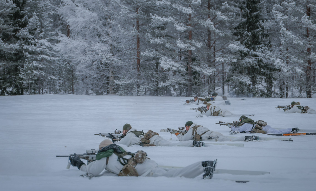 Illustrationsfoto – Danske kursister træner skydeteknikker på ski. Foto: Ulrikke Holm Christensen / Forsvaret