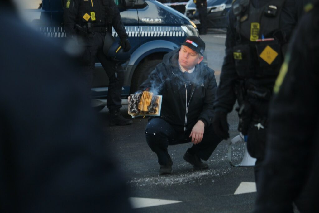 Rasmus Paludan har flere gange brændt bøger af, som han har kaldt koranen - aktioner som var med til at udløse den politiske debat, der førte til indførelsen af koranloven. Foto: Arkiv.
