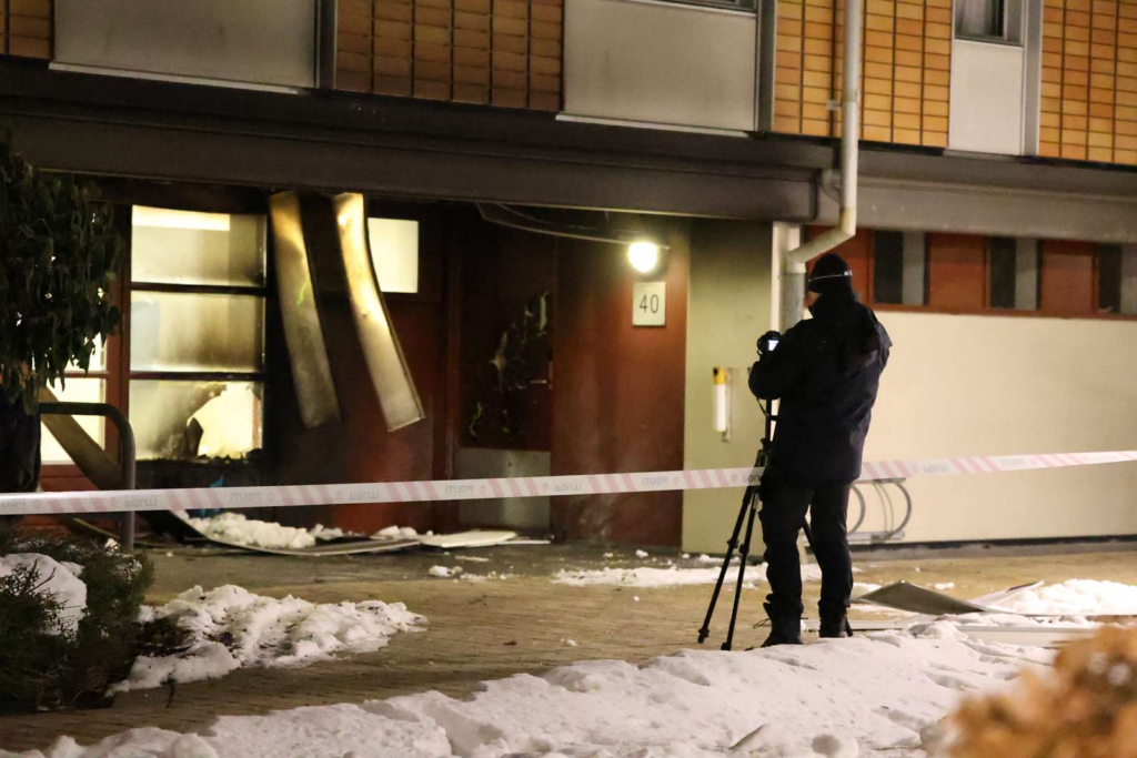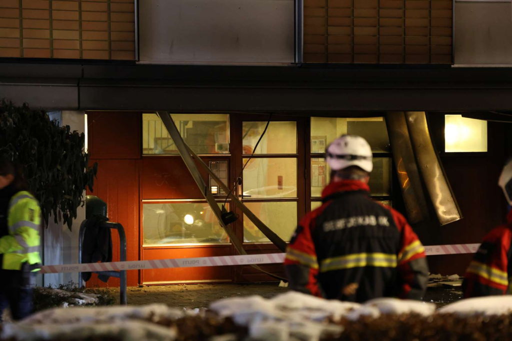 Der er natten til onsdag sket skader på en opgang efter en kraftig eksplosion foran bygningen.