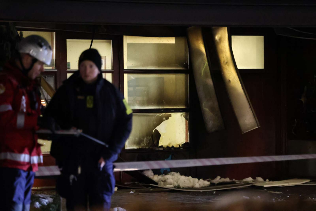 Han fortæller, at indgangen til lejlighedsbyggeriet har fået større skader efter eksplosionen.