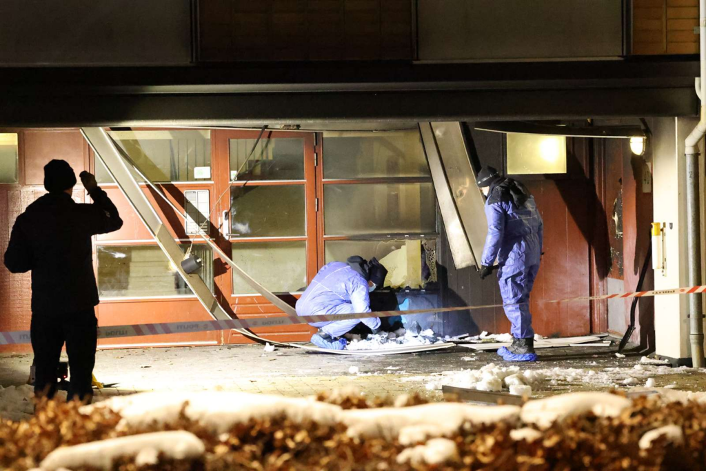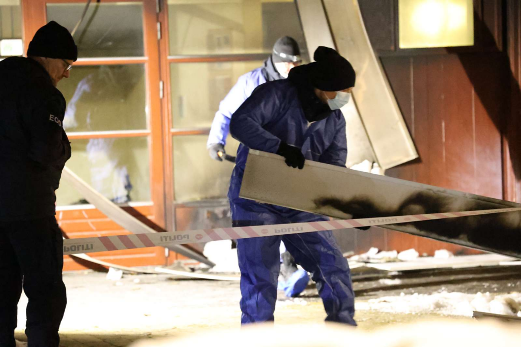 Politiet efterlyser vidner, efter at indgang til lejlighedsbyggeri er ødelagt af eksplosion midt om natten.