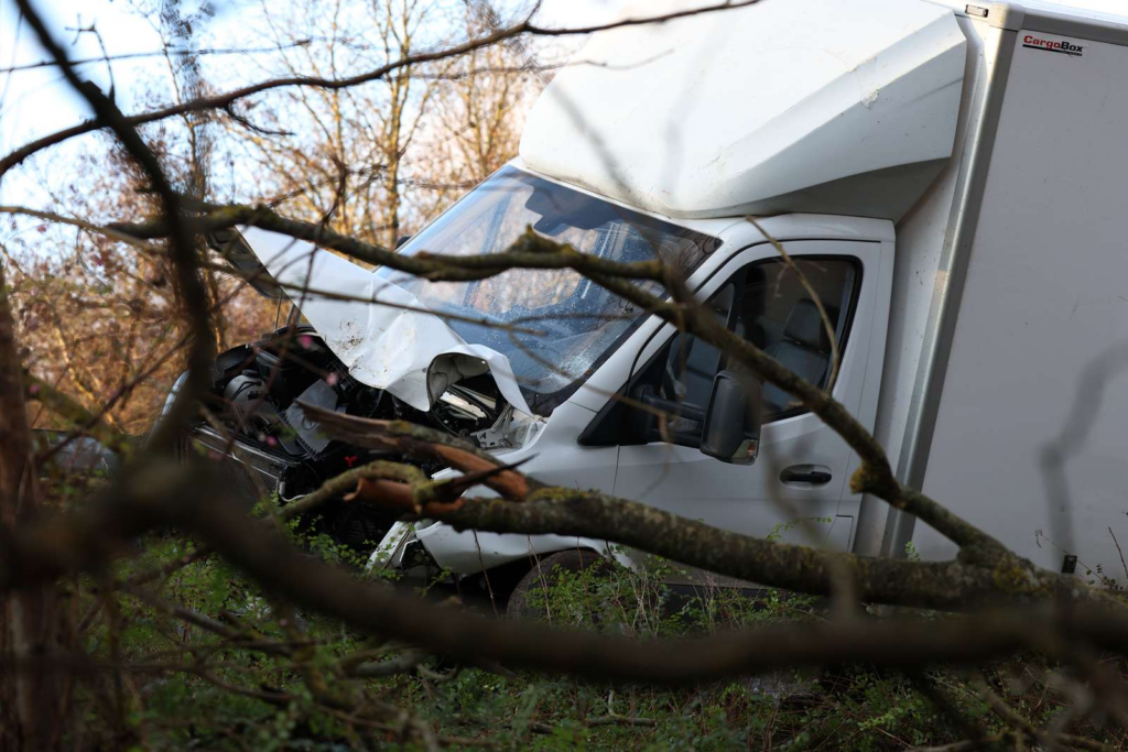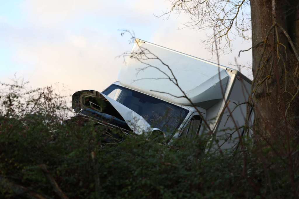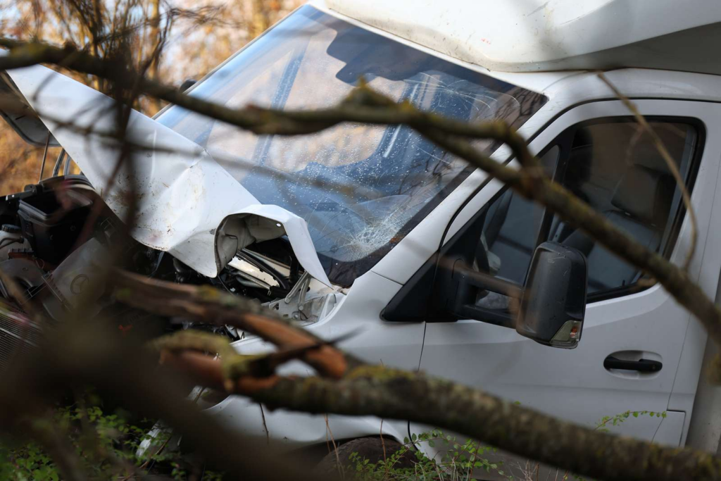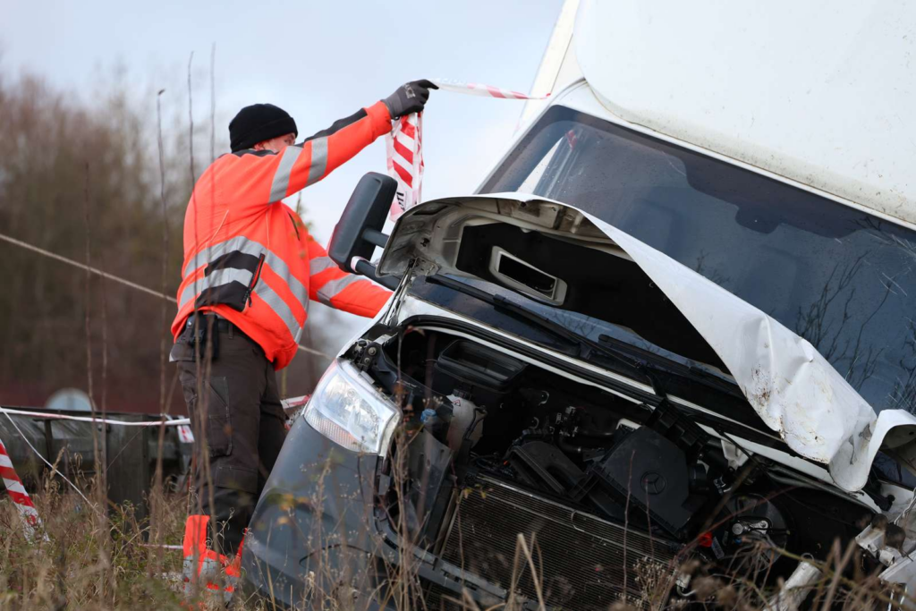 Det store køretøj holdt med smadret front og forrude på stedet, hvor man spærrede motorvejen helt i sydgående retning i forbindelse med bjærgning af varebilen.