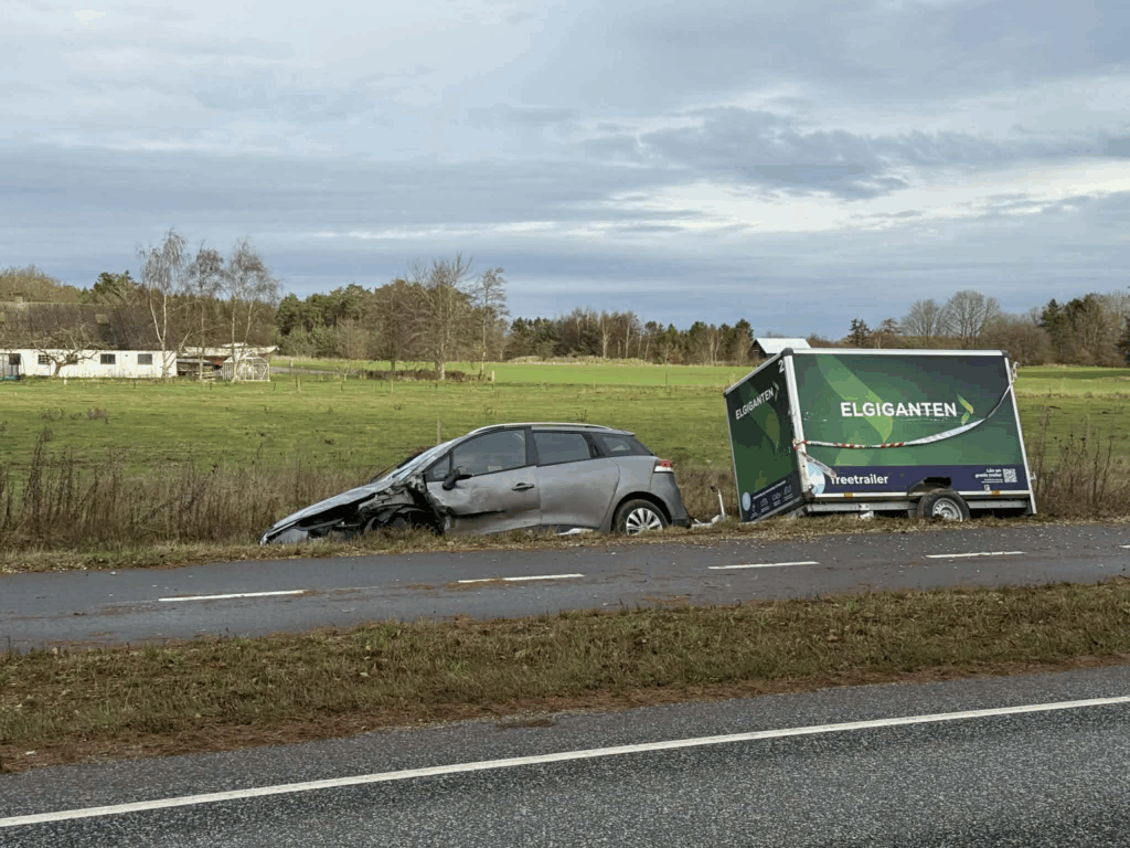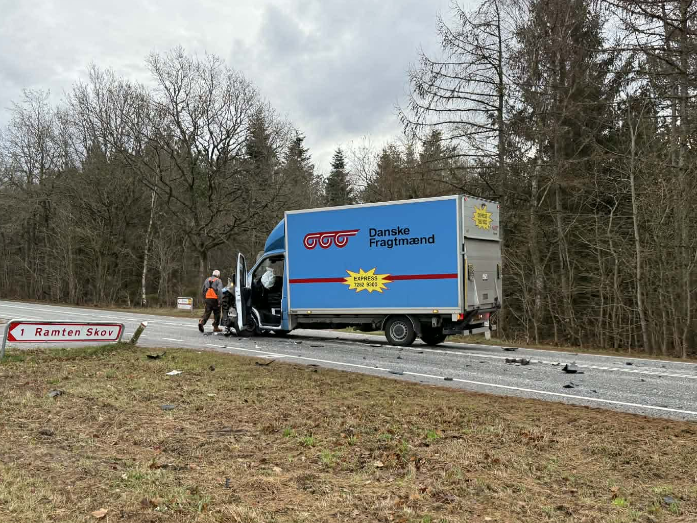Ved et kryds var en varebil med lift og en personbil med trailer kørt frontalt sammen. Ifølge vidnet skulle det ene køretøj have svinget over i den forkerte vejbane, hvorefter sammenstødet skete.
