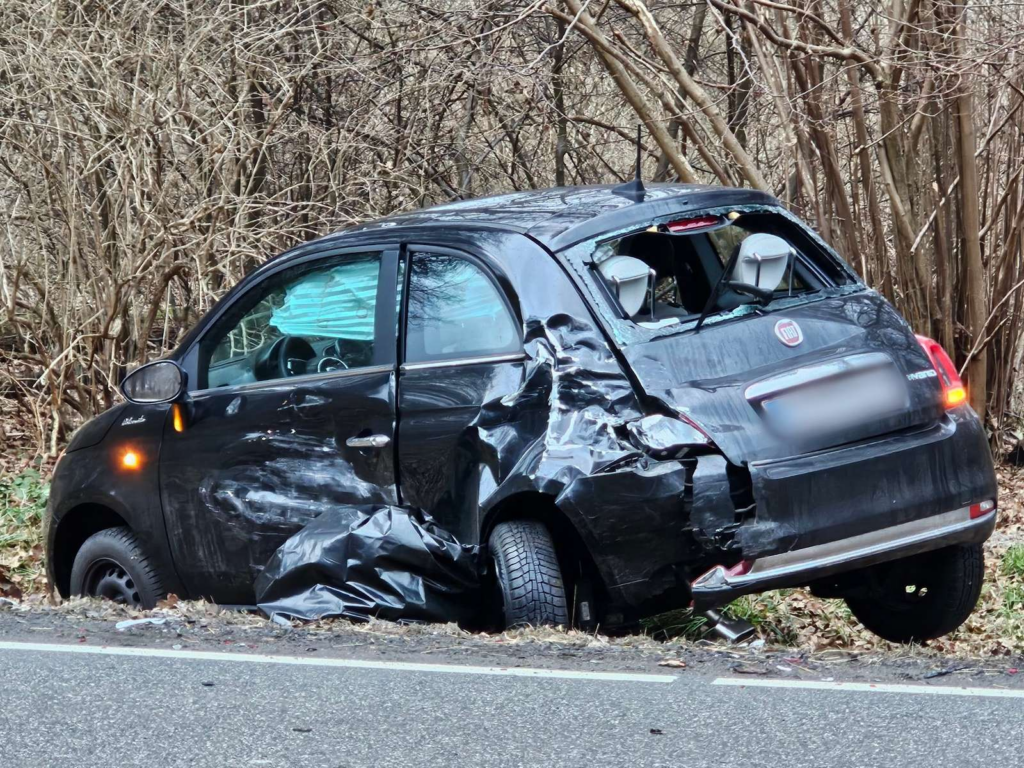 På billederne kan man se, at den lille personbil har fået et hårdt slag på siden af bilen, hvor varevognen har ramt.