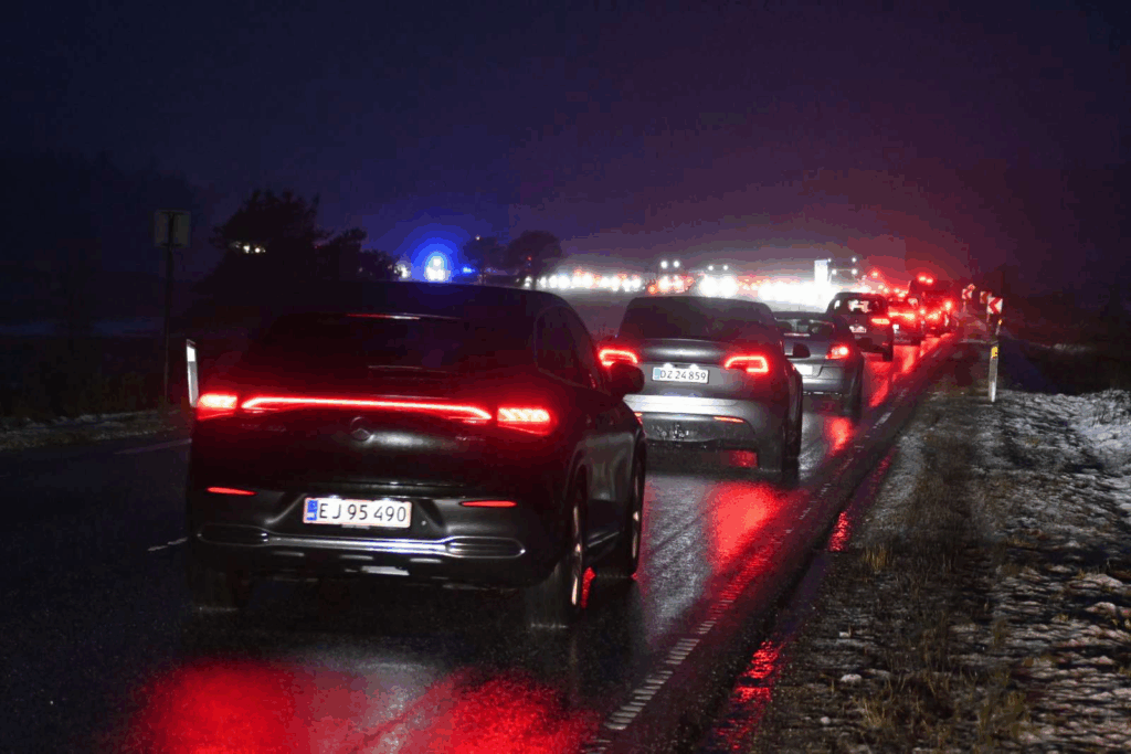 Billeder fra området viser voldsomt lange køer og meget tæt trafik i området. Det skulle dreje sig om op til flere kilometers kø.