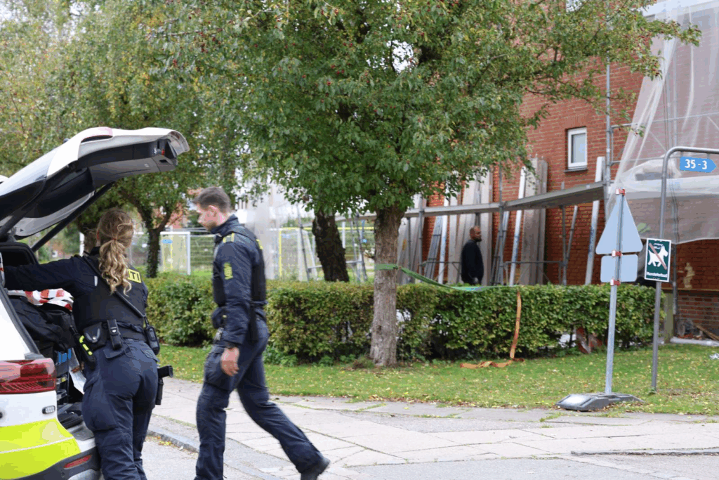 Her ses politiet omkring stedet lørdag eftermiddag – se flere billeder nederst