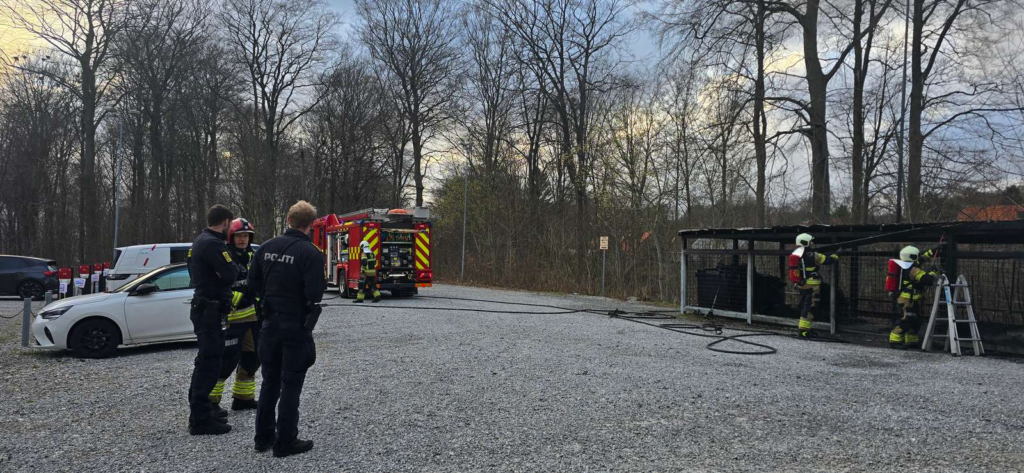 “Det vides pt ikke om branden er påsat. Politiet er taget med, så de kan finde overvågning,” siger vores udsendte.