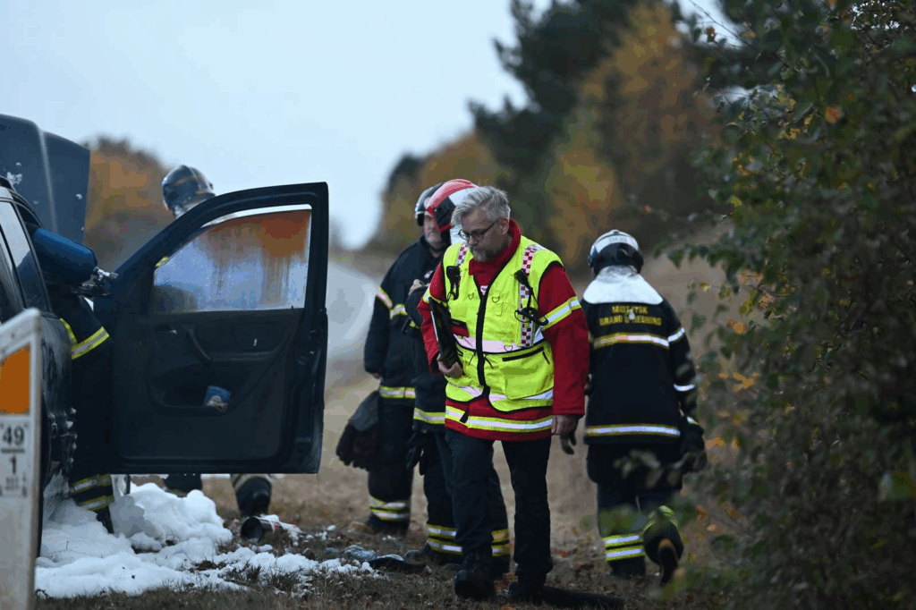 “Der er bestilt to slamsugere til at rense vejbrønde for brændstof,” siger Presse-fotos.dks udsendte.