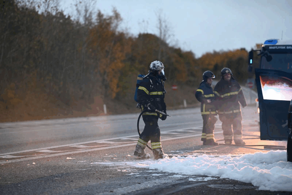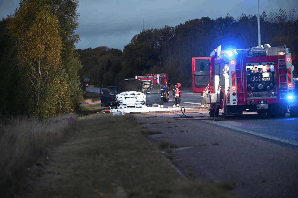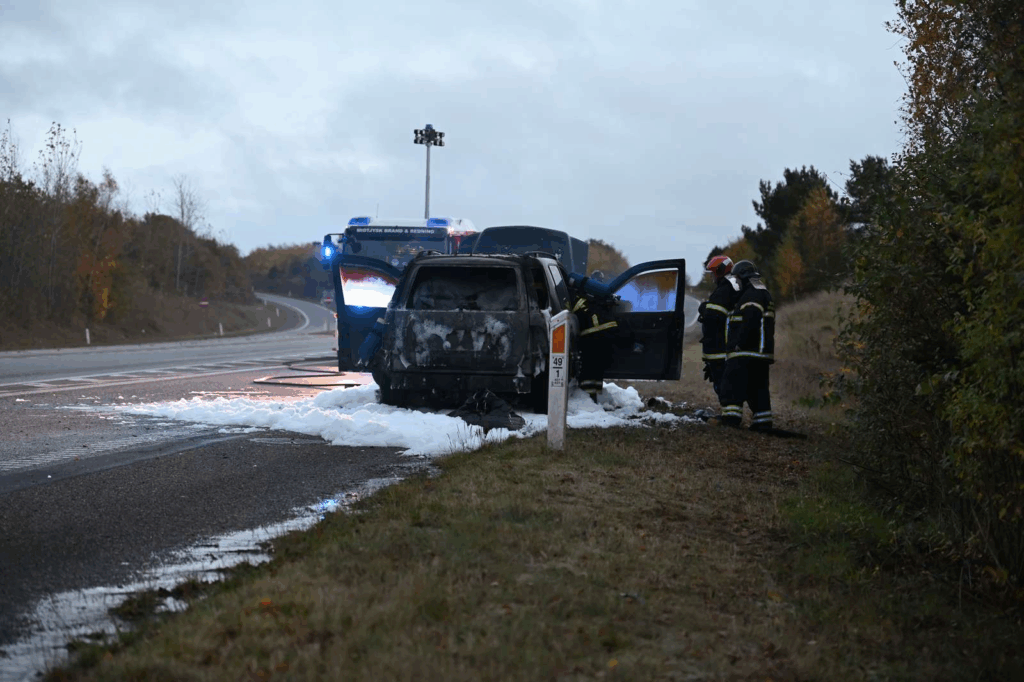 Branden i køretøjet blev kort efter slukket, men det endte med at udbrænde fuldsætndig.