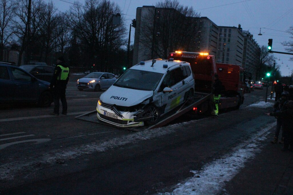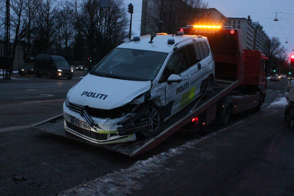 Her bragede to patruljevogne sammen i krydset mellem Vestre Fælledvej og Vigerslev Allé på Vesterbro i København.