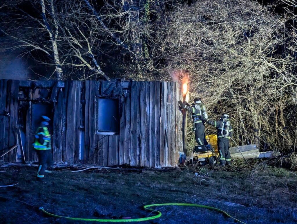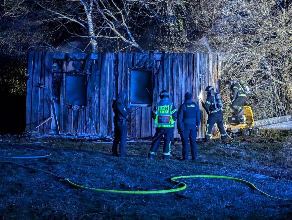 Branden raser i et skur på Fyn. Video: Presse-fotos.dk