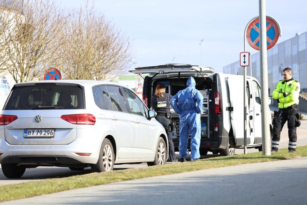“En patruljevogn er kørt afsted med en anholdt person, og nu er efterforskere og teknikkere ellers i gang med at sikre affekter tilknyttet hændelsen, herunder en kørerstolscykel. Da det formodet skyderi er foregået inde på en privat virksomheds grund, kan vi ikke kommer nærmere ind og se gerningsstedet,” fortæller Presse-fotos.dks udsendte på stedet.