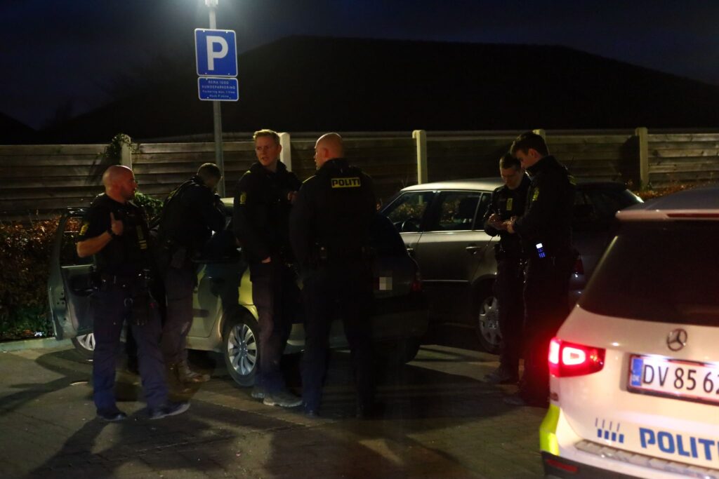 Bilens fører skulle eftersigende have gået ind i en butik, efterladt bilen og smuttet fra stedet til fods. Denne bil er politiet nu ved. Bilen ved siden af har intet med episoden at gøre.