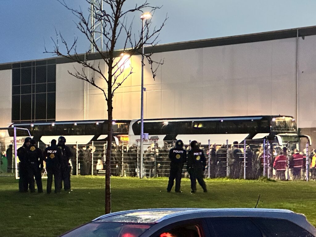 ‘En af vagterne bliver slået i ansigtet af en fan i forbindelse med visitationen,’ siger Simon Skelkjær, der er indsatsleder ved Midt- og Vestjyllands Politi, til TV Midtvest.