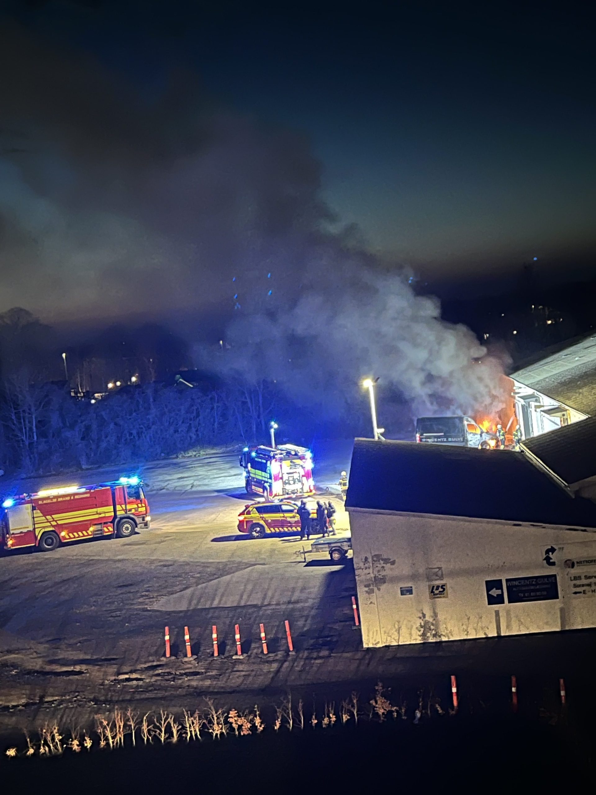 Billeder fra stedet viser, at det er en elbil, der står i flammer.