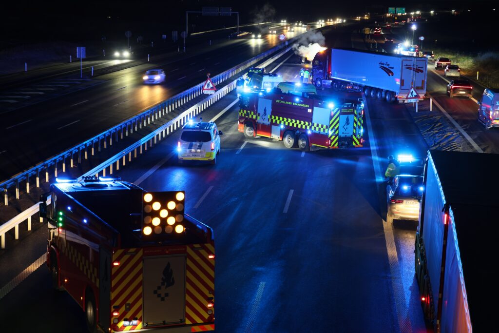På nuværende tidspunkt er det uklart, om lastbilen har været impliceret i hændelsen, eller om der blot er blevet spærret for dens videre færd på motorvejen grundet bilbranden.