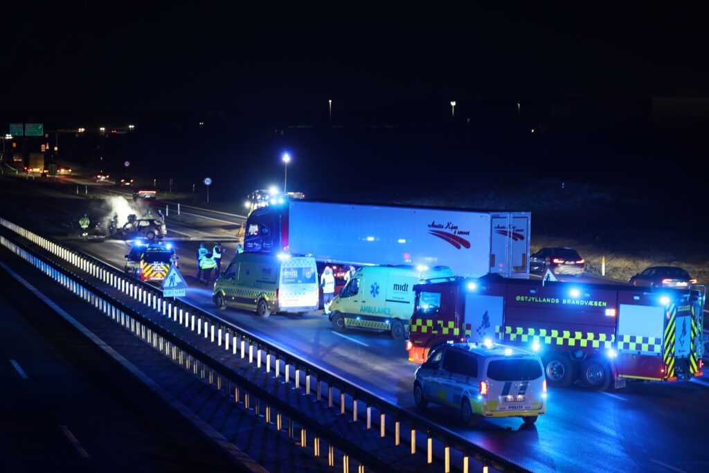Politi og redning er fremme på stedet. Ifølge den udsendte fra Presse-fotos.dk kom to ambulancer kørende til stedet i høj fart med udrykning.