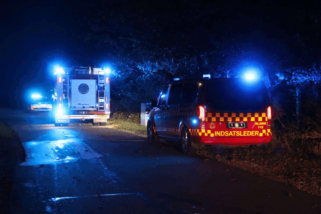På X skrev Nordjyllandsberedskab i nat, at de var ni brandmænd på stedet.