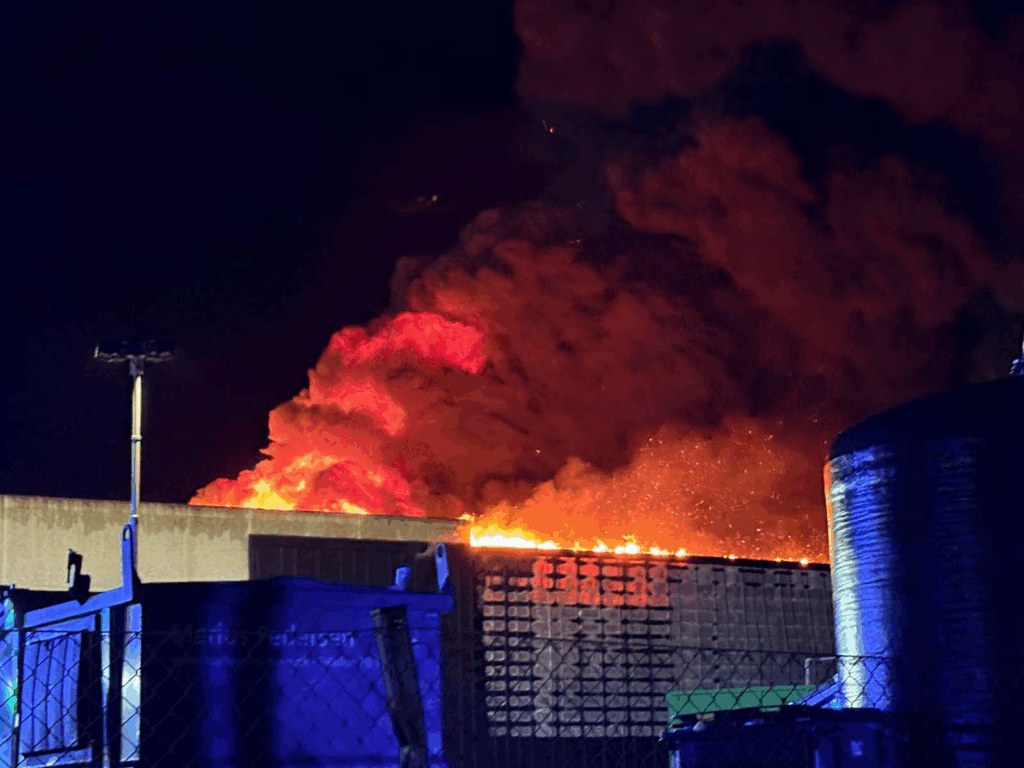Onsdag aften er politi og brandvæsen hastet ud til en voldsom brand på en erhvervsejendom.