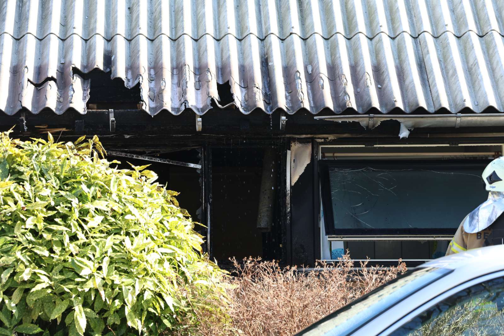 Billeder fra stedet viser, at flere vinduer er sprunget i køkkenet.