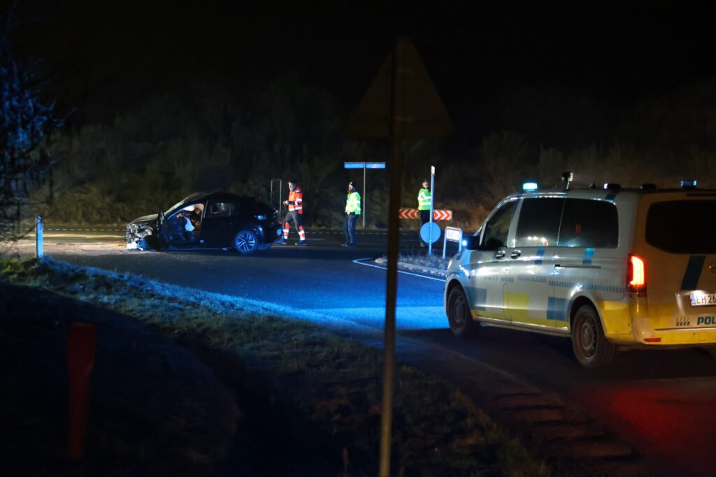 Det var tre personbiler, der kørte sammen ude på Dons Landevej. Den ene af bilerne snitter ifølge tvSyd det ene køretøj og kører frontalt ind i et andet.