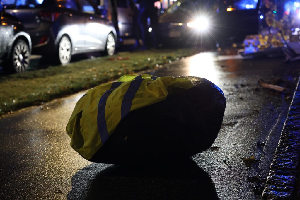 “Der er sket stor materiel skade, og en kæmpe sten er blevet rykket på af bilerne under ulykken. En person bliver lige nu testet for narkokørsel, og en anden person er blevet lagt i håndjern,” lyder det.