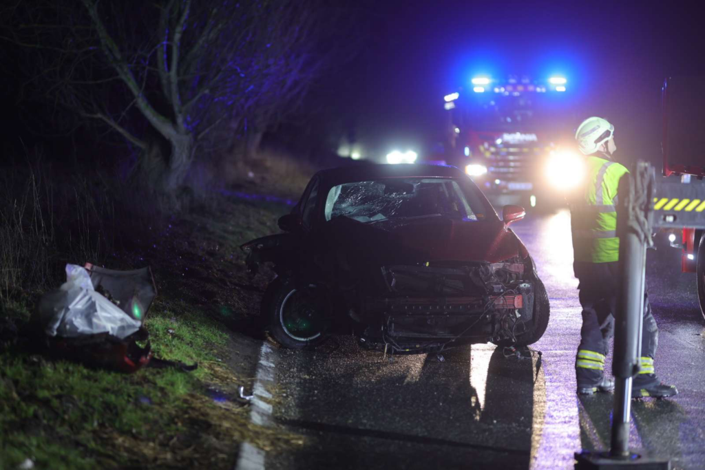 Flere udrykningkøretøjer er onsdag aften hastet ud til et færdselsuheld, hvor en personbil er smadret ind i et træ.