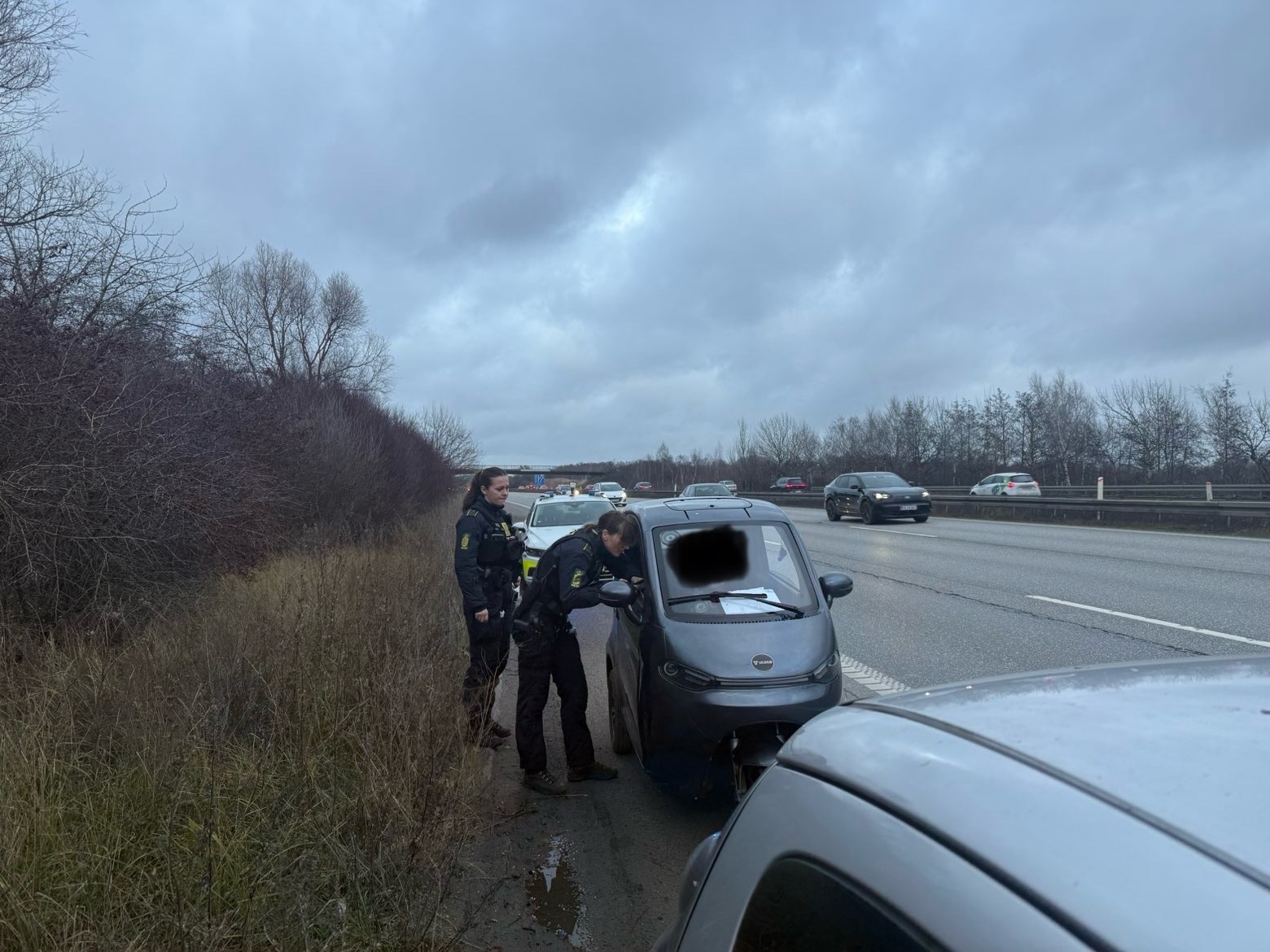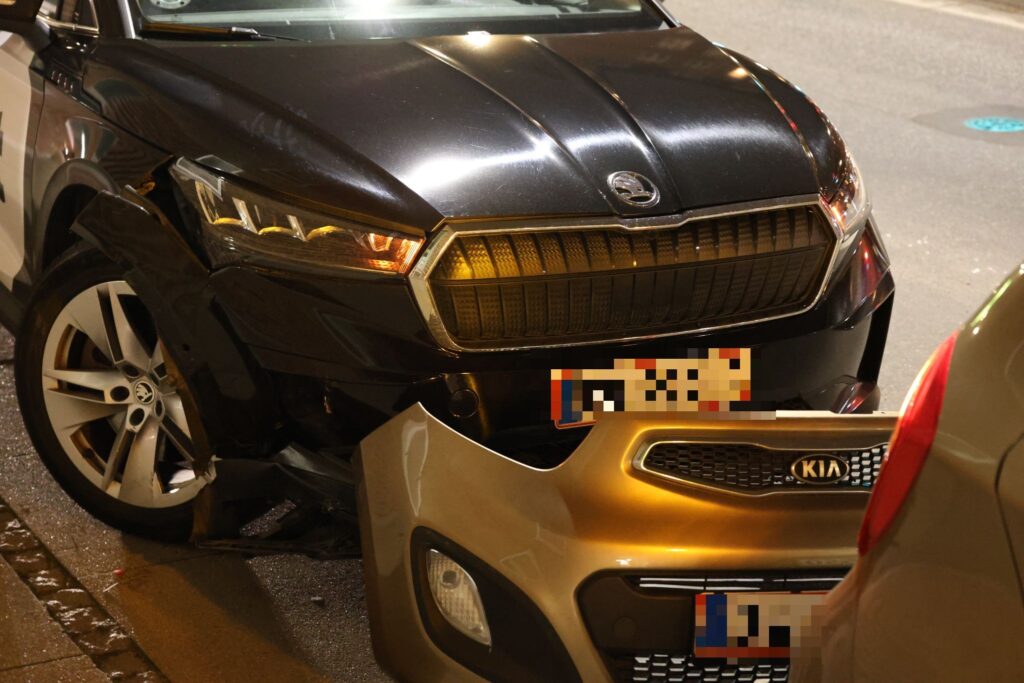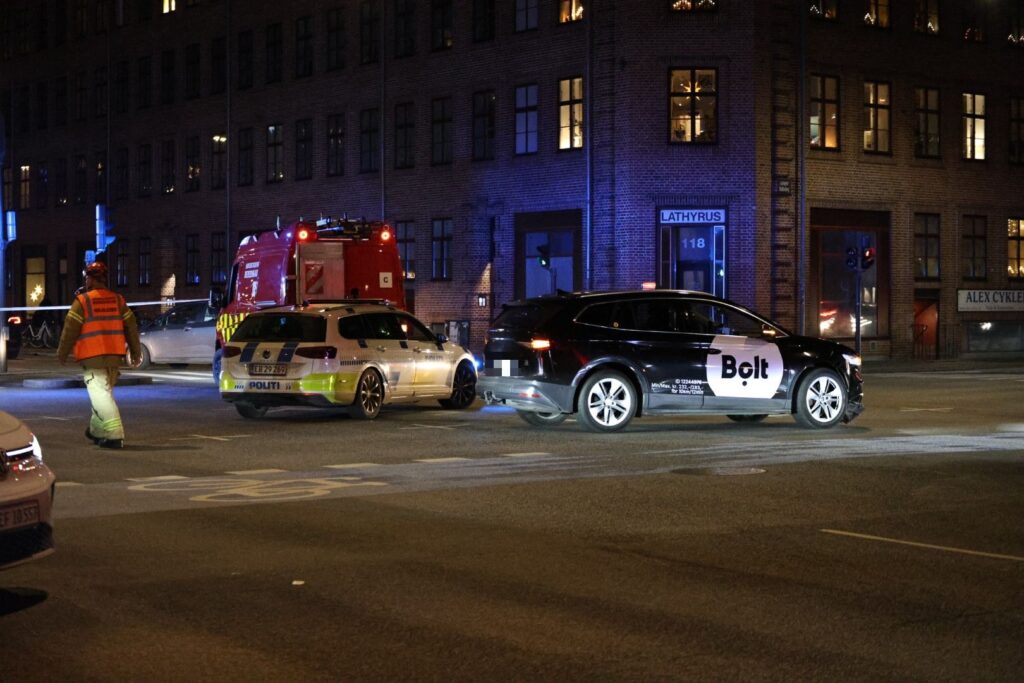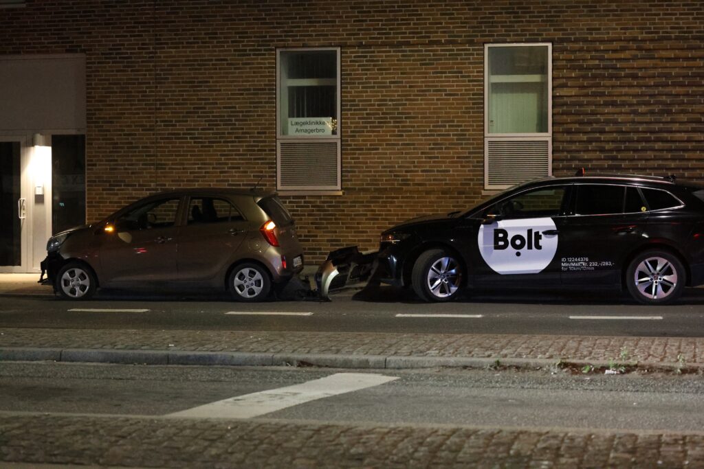 En lånebil fra tjenesten Bolt er indblandet i ulykken. Det viser billeder fra stedet.