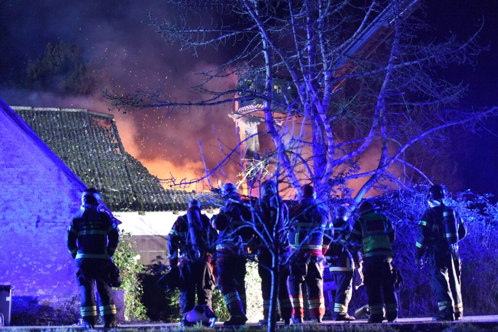 ‘Kl. 0606 modtog vi anmeldelse om brand i et hus på Østergårdsstræde i Langebæk ved Vordingborg. Huset er svært beskadiget. Slukningsarbejdet pågår stadig,’ skriver politikredsen.