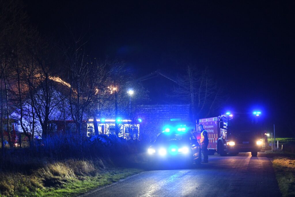 ‘Vi har på stedet fundet en indebrændt person, som vi formoder er husets beboer. Vi arbejder fortsat på stedet,’ skriver politikredsen i et nyt opslag på X.