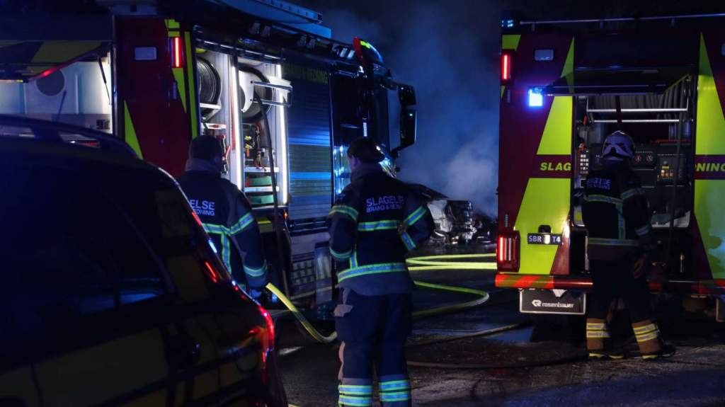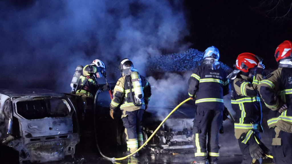 Flere udrykningskøretøjer er natten til onsdag rykket ud til en voldsom brand i fire biler.