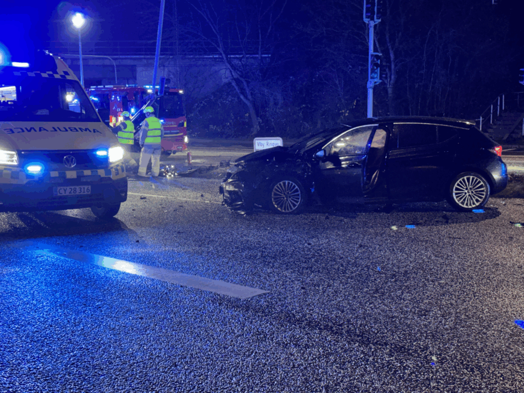 Tidligt lørdag morgen er to personbiler kørt frontalt ind i hinanden i krydset mellem Søren Frichs Vej og Viby Ringvej i Aarhus.