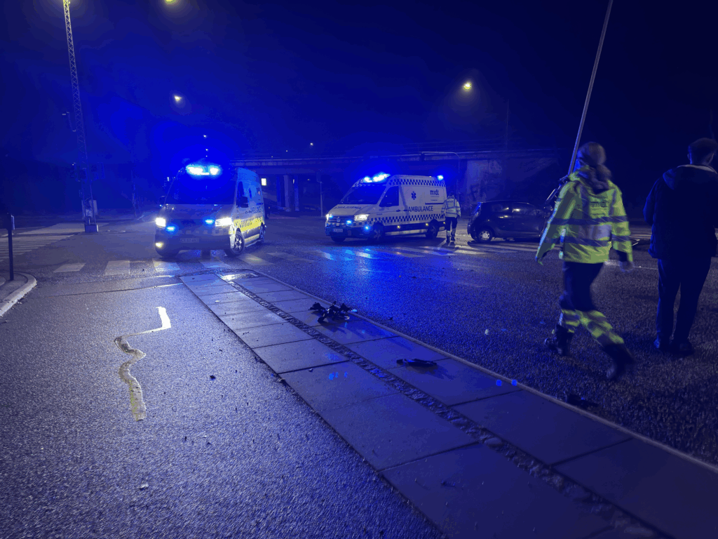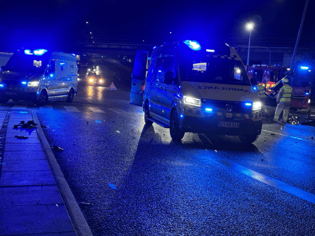 Både politi, ambulance og vejhjælp er til stede ved ulykken.