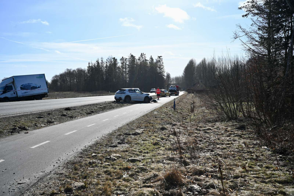 Billeder fra stedet viser i den forbindelse, at tre køretøjer har involveret i uheldet.