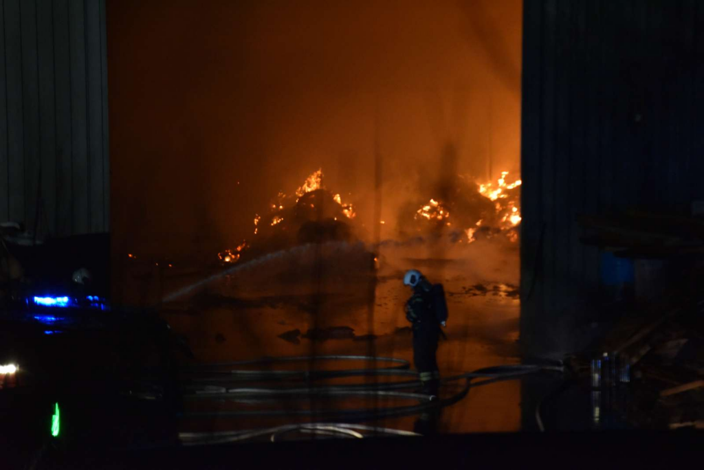 Billeder fra stedet viser flere brandfolk, der forsøger ved hjælp af brandslanger forsøger at få bugt med de store flammer.
