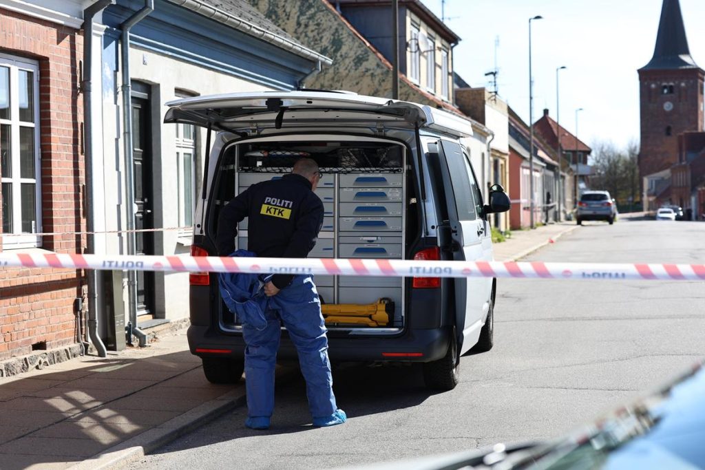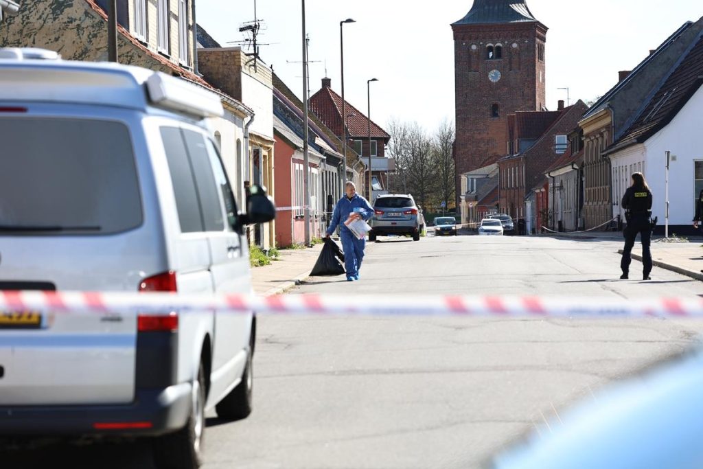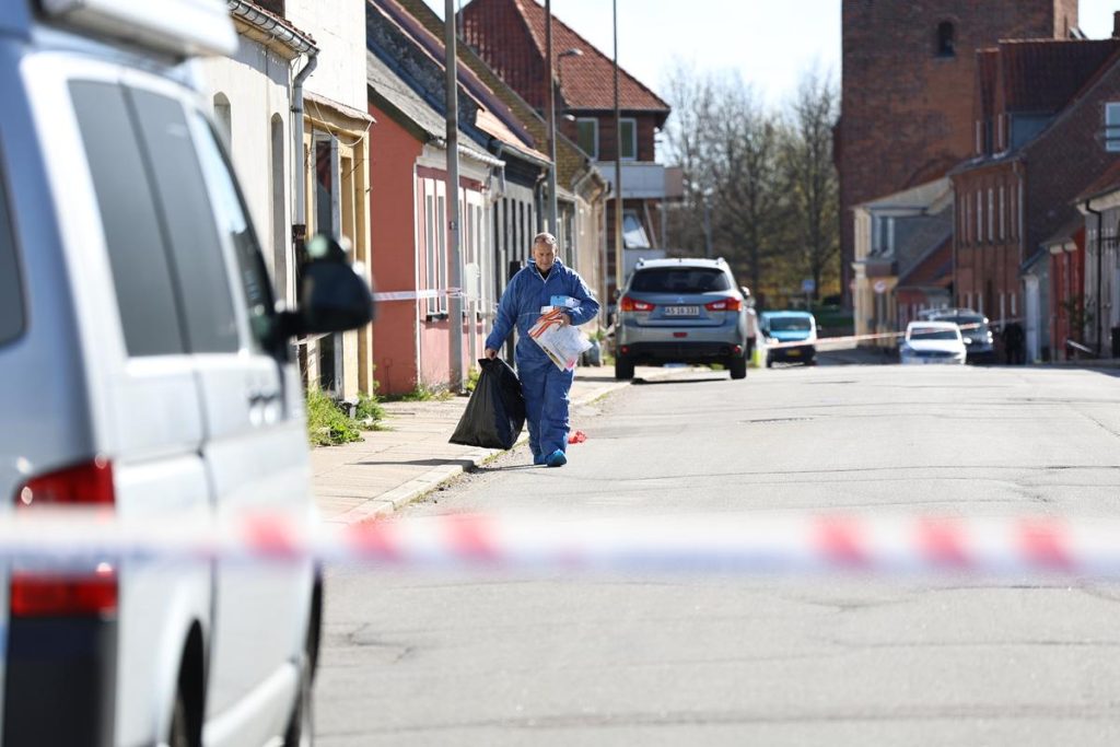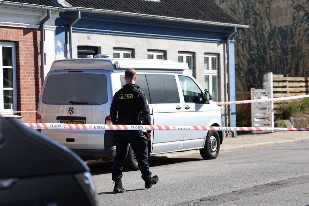 Herunder kan du se billeder fra politiets fortsætter tilstedeværelse på gerningsstedet, hvor gaden er afspærret og politiets teknikere fortsat arbejder på højtryk:
