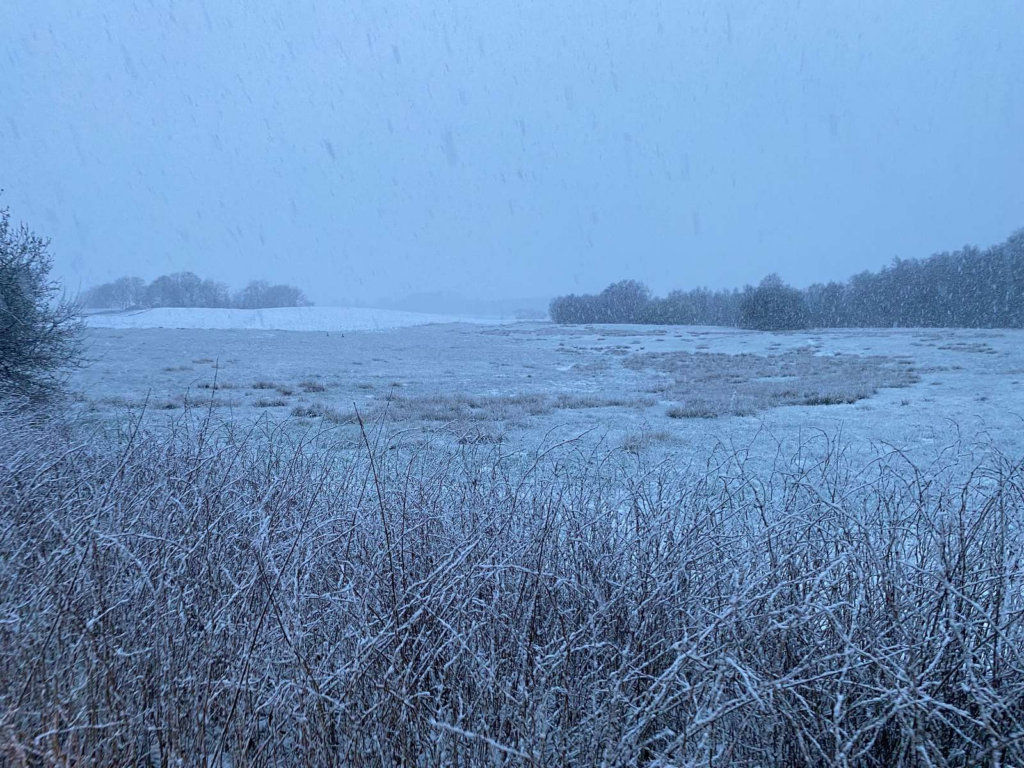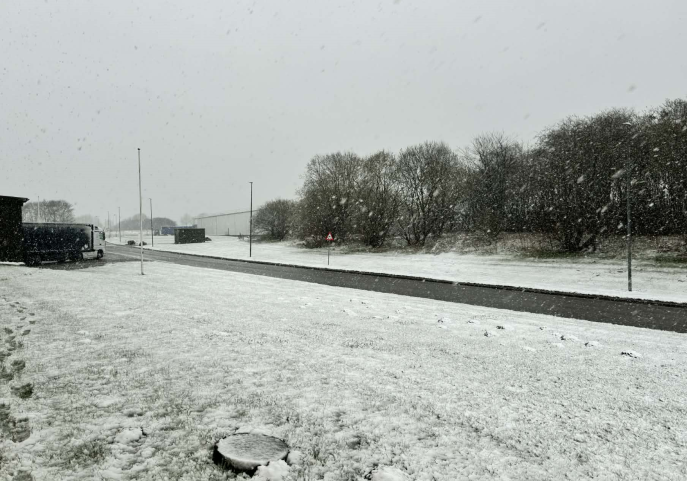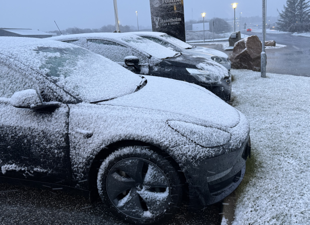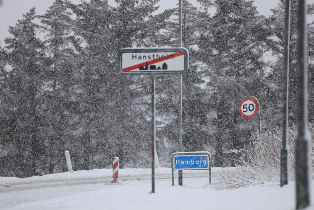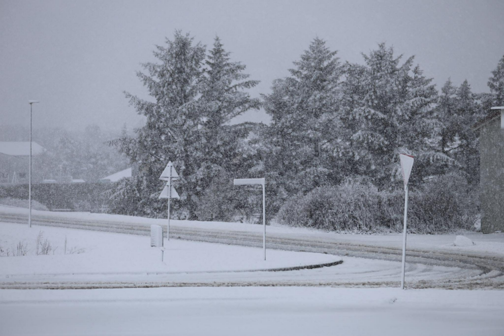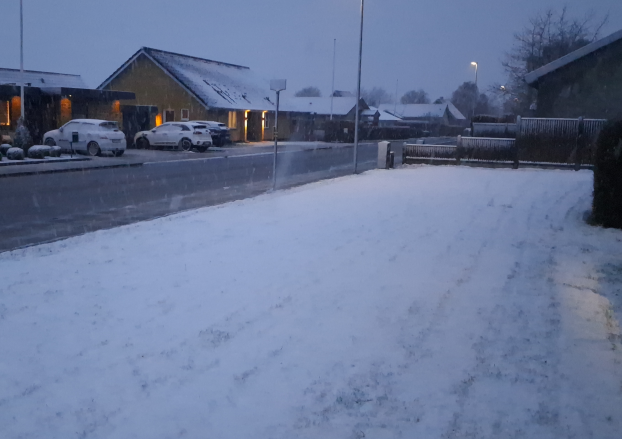 Sådan siger Uffe Jensen fra Hansholm fredag morgen til Presse-fotos.dk, efter der de sidste timer er faldet sne mange steder i Danmark.