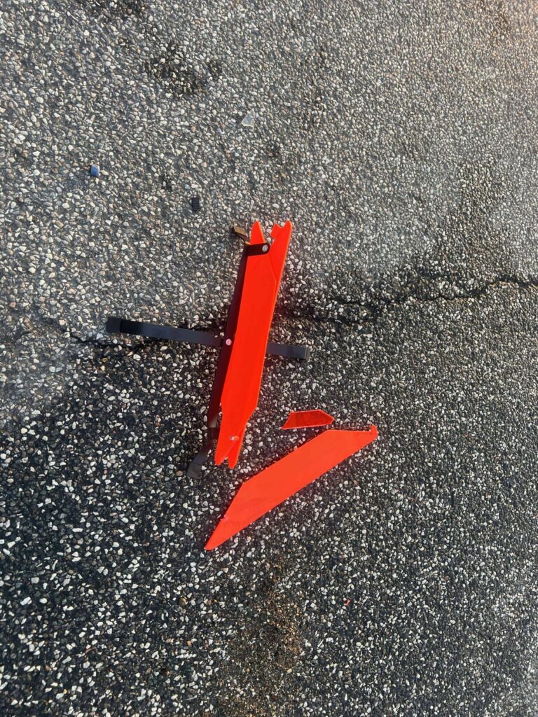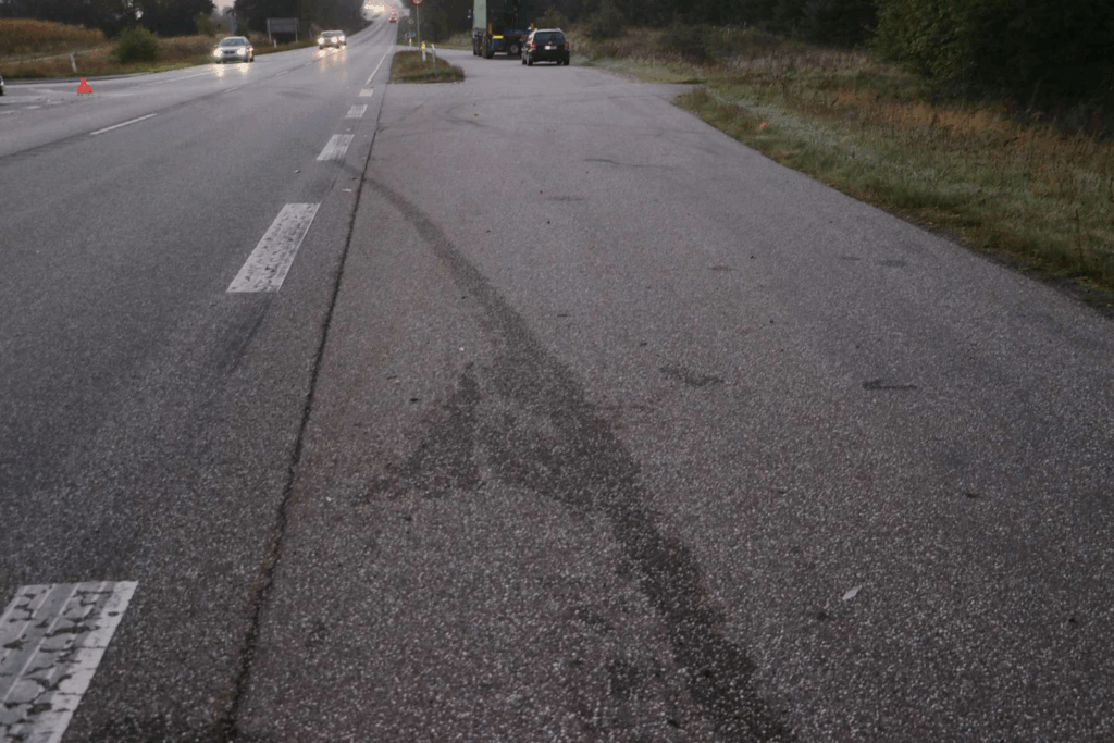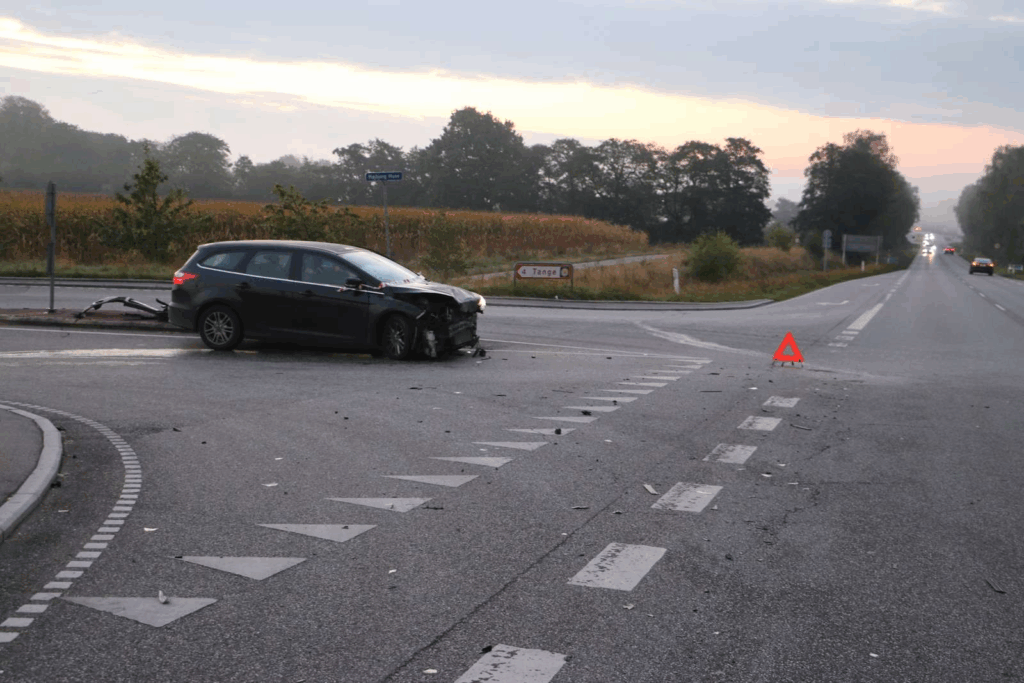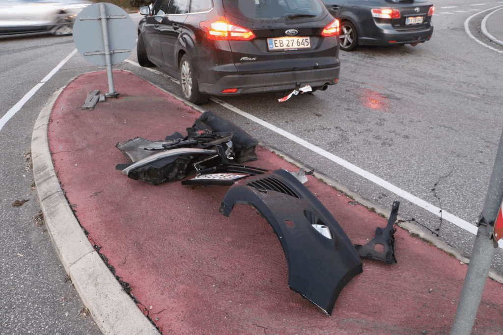 Voldsomt uheld på hovedvej: Advarselstrekant kørt ned