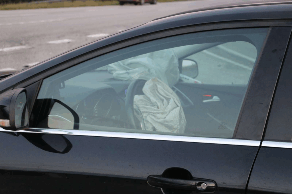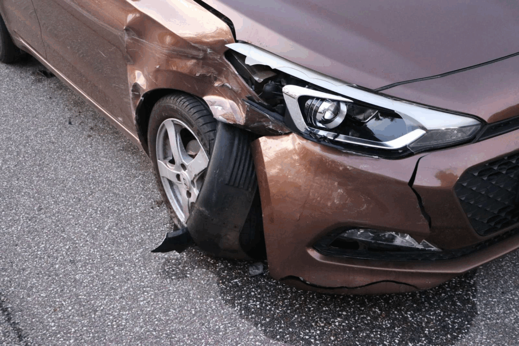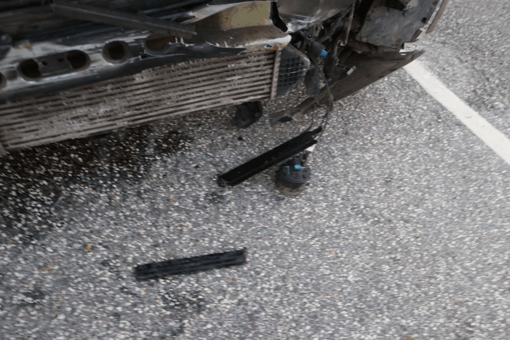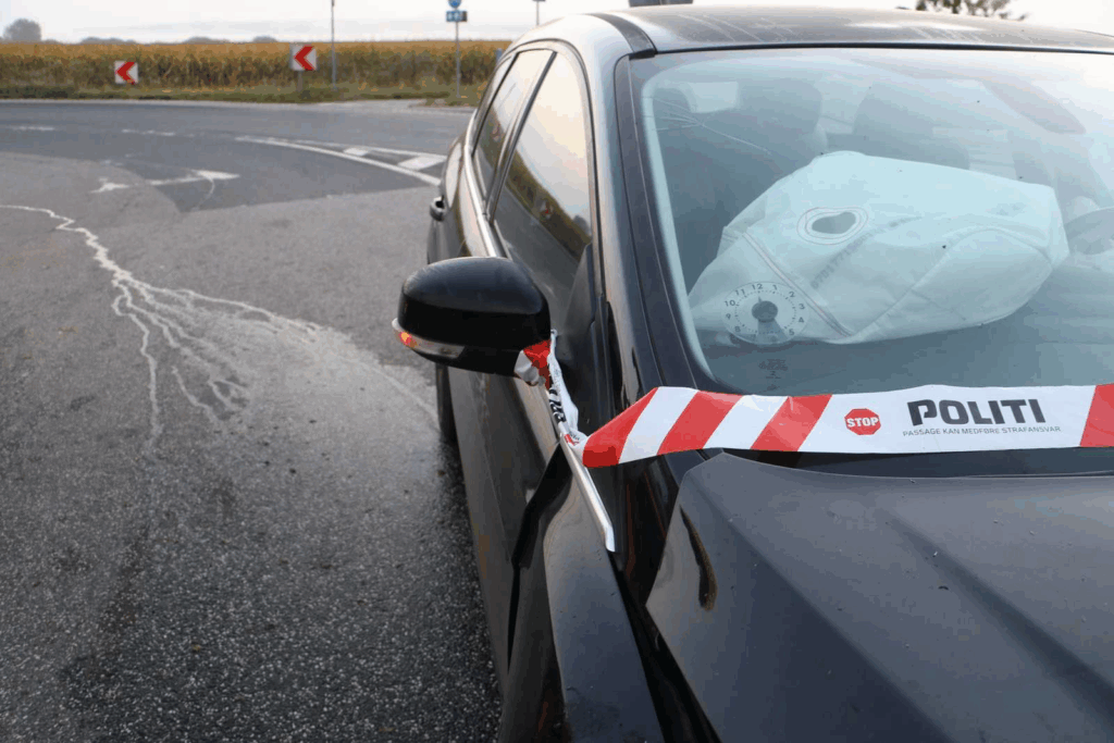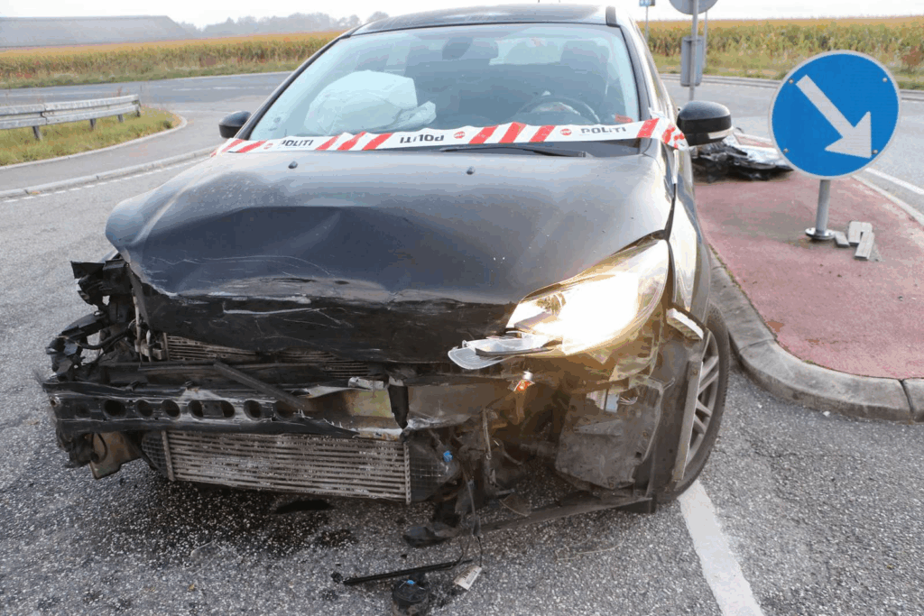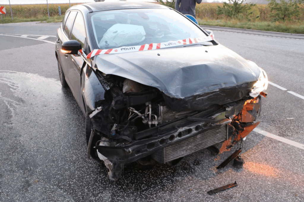 På billeder fra stedet ses en bil, der står stærkt medtaget i på vejen med en front, der er fuldstændig ødelagt.