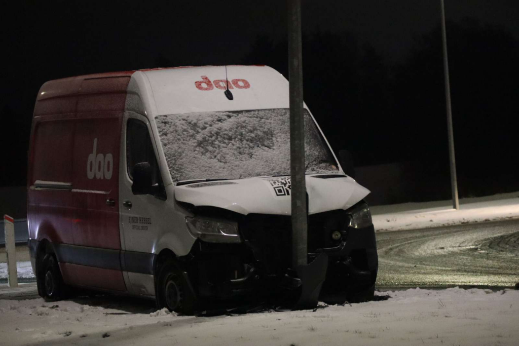 En varebil er tidligt torsdag morgen kørt direkte ind i en lygtepæl.