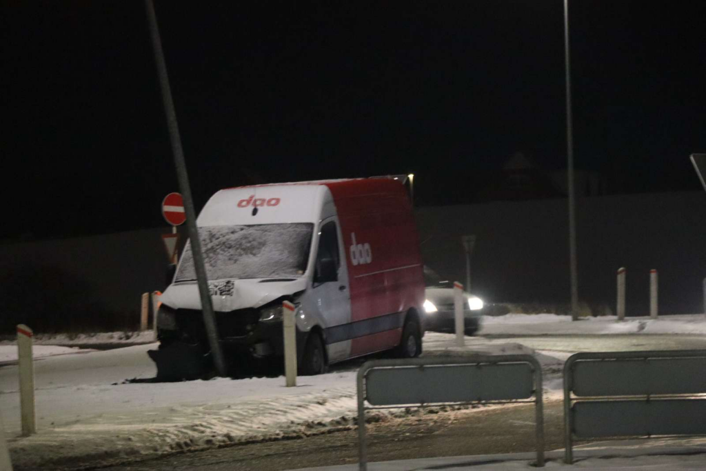 Tidligt torsdag morgen har en varebil været involveret i en ulykke og er braget direkte ind i en lygtepæl.