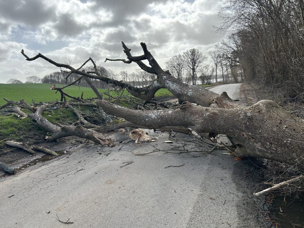 Samtidig melder politiet om, at der allerede er faldet flere træer ned over vejen.