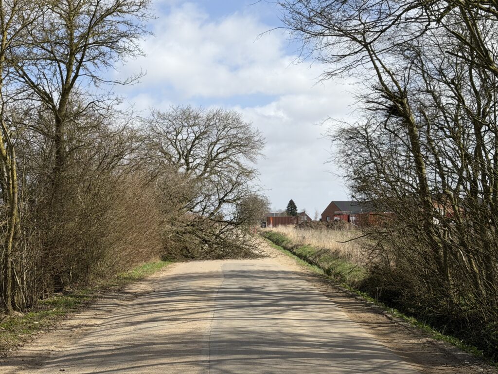 Også på en vej tæt på Faaborg har et træ skabt trafikproblemer, efter at det er væltet ned og spærrer hele vejen.
