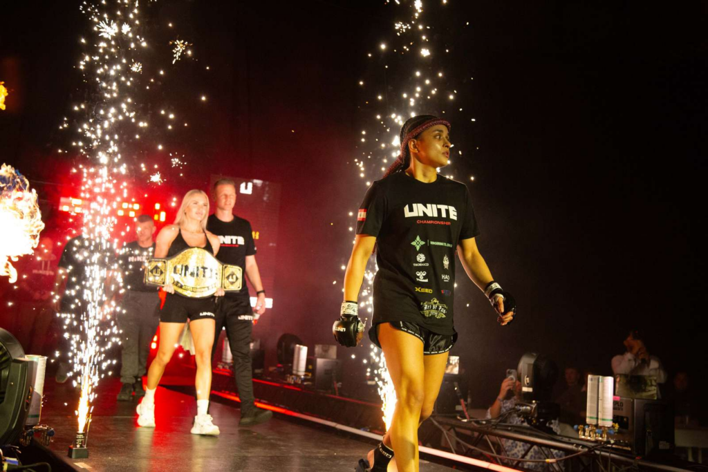 Den dominerende præstation betød, at hun allerede i sin anden UNITE-kamp fik muligheden for at blive organisationens første kvindelige titelholder.